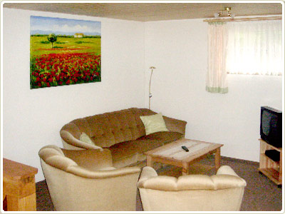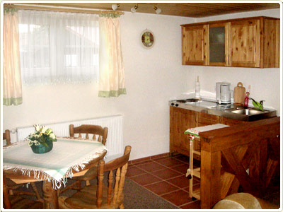 Komfortabel eingerichtet Ferienhaus (50m²) mit Wohnküche, SAT-TV, kostenlosen WLAN (verfügbar auf unserem Gelände), Schlafraum (bis max. 3 Personen), Bad mit WC, Dusche, Haarfön. Am Haus befindet sich eine Terrasse und eine Liegewiese. Das Einnehmen der Mahlzeiten ist in der Pension möglich.